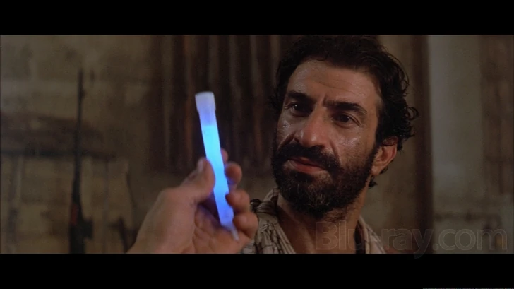 Rambo heads to Peshwar, Pakistan, the de-facto headquarters of the Mujhadeen, where he meets Mousa, the leader of a rebel force. Mousa heads to the back room with Rambo to discuss the rescue mission. Rambo goes through his gear with Mousa and discusses his explosives and detonators. Mousa spots a plastic stick full of clear liquid and inquires what it is. Rambo grabs it and cracks it, and the clear liquid instantly becomes bright blue.
